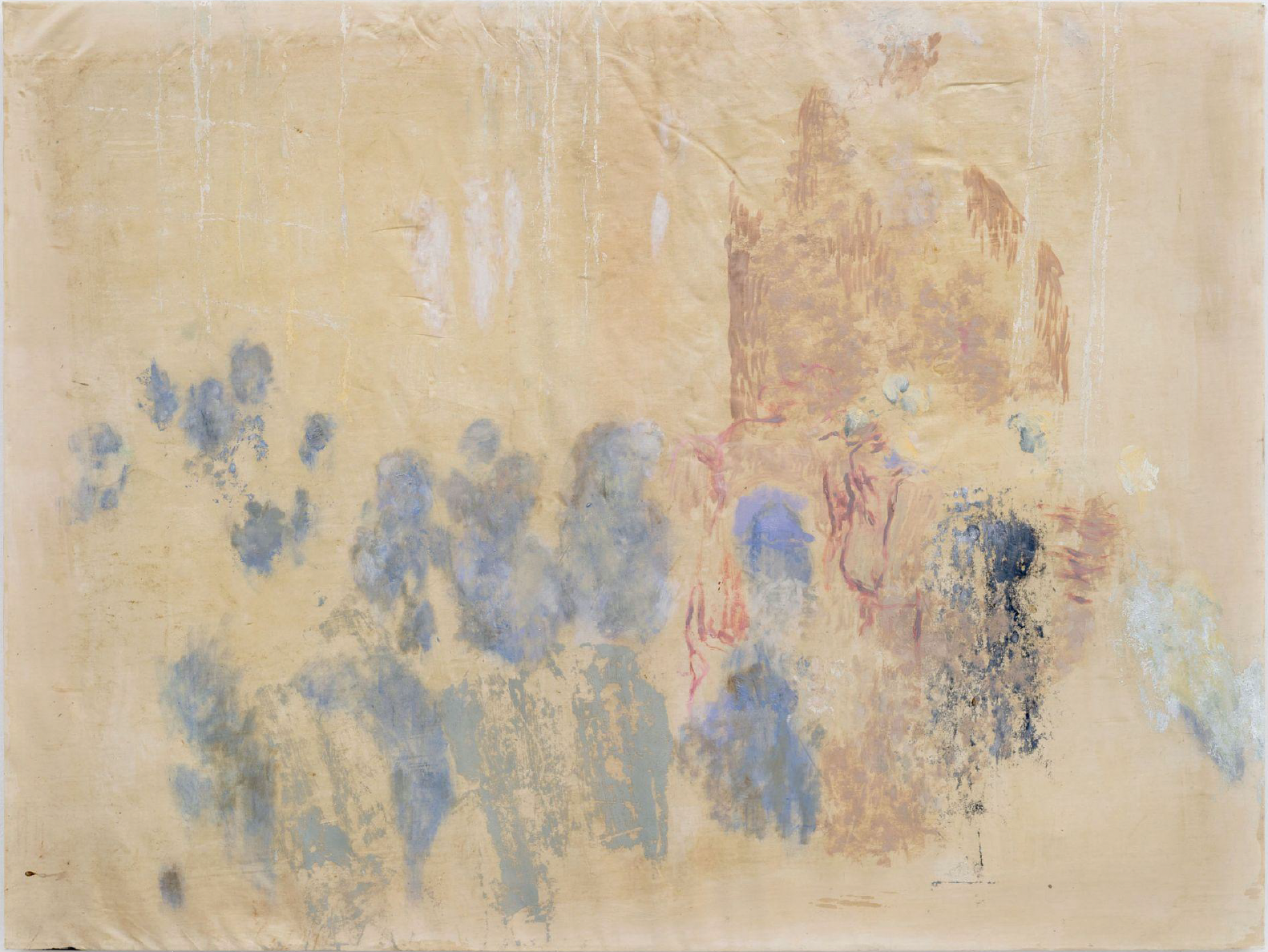 The Harm, 2024. Oil on shellacked found fabric, 30 x 40 inches. Courtesy of the artist.