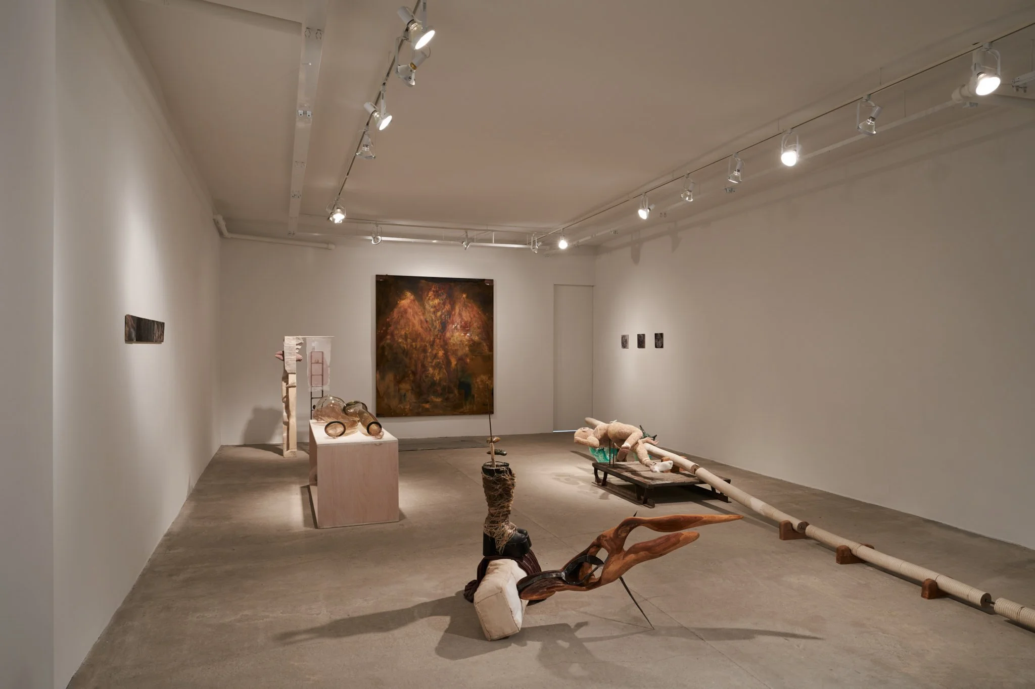 Material decisions are similarly attuned to layered meanings. Hand-carved wood and stone, cast elements, organic matter, appropriated texts, and historically resonant objects are brought together through processes that feel both deliberate and provisional. These materials carry personal, cultural, and historical charge, yet Ouyang resists symbolic closure. Knowledge is embedded through making, through touch, repetition, and transformation, so that meaning accumulates gradually rather than declaring itself outright.