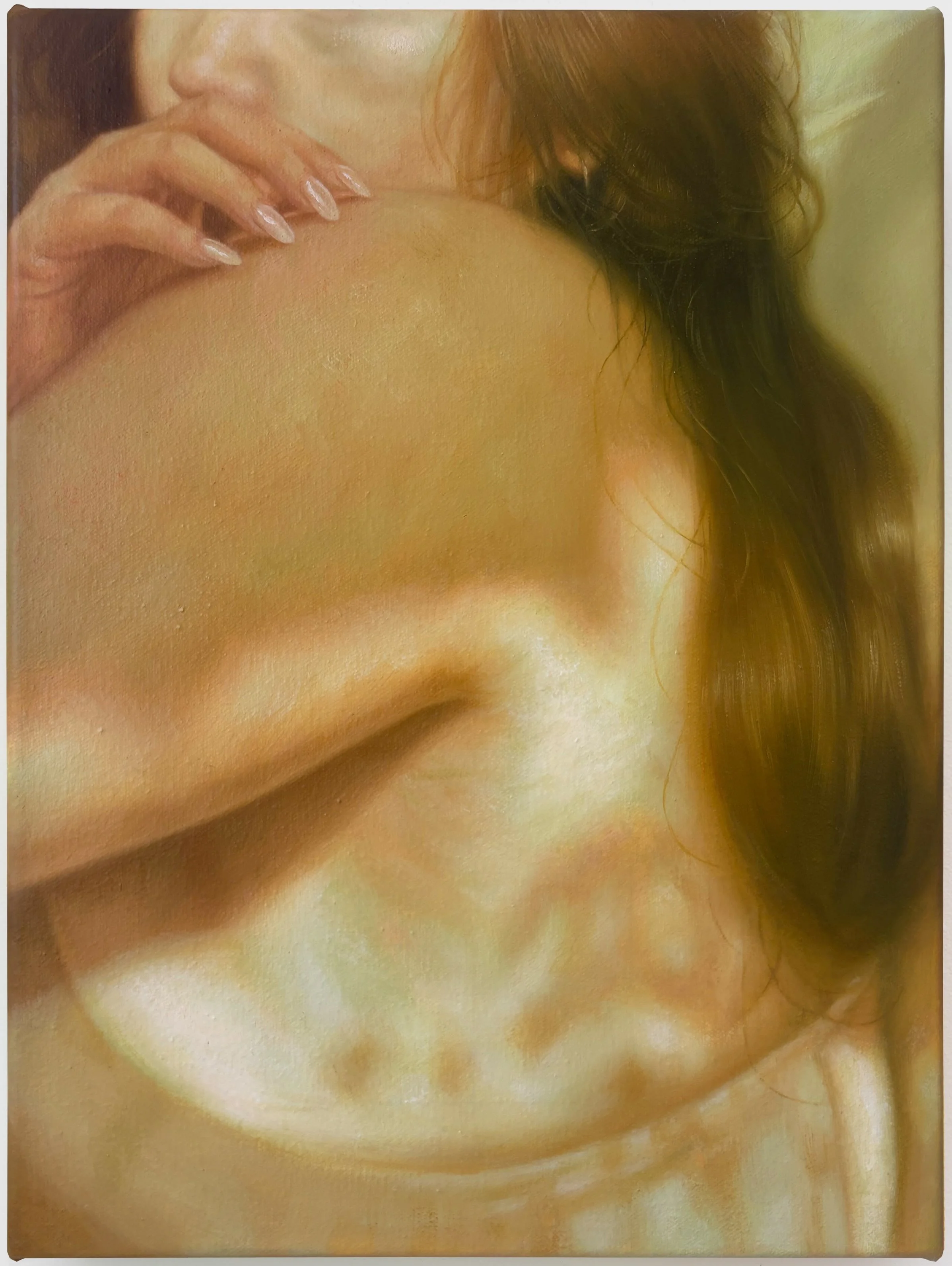 Zuo’s compositions frequently isolate portions of the body, in doing so, she fragments and reframes the figure, emphasizing gesture as a language of both presence and selfhood. The act of painting becomes less about narrating a complete figure and more about lingering on the significance of partial views, where meaning is embedded in touch, texture, and motion. These gestures, mundane in daily life, are elevated to painterly subjects that speak to the rhythms of embodiment and the subtle poetry of interior existence.